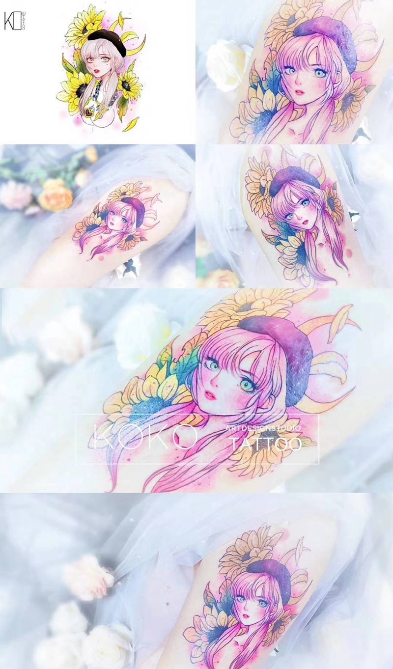 当前位置: 首页 >湖北省武汉市纹身店-KOKO TATTOO原创定制纹身店纹身图案>少女纹身图片_腿部水彩一人一图原创设计插画设计纹身图案