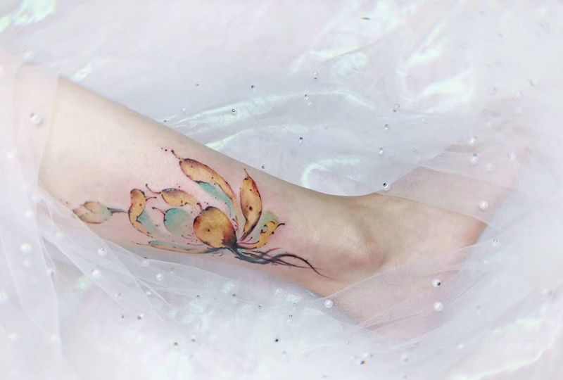 莲花——遮盖设计纹身图片_脚部水彩一人一图遮盖设计定制设计纹身图案