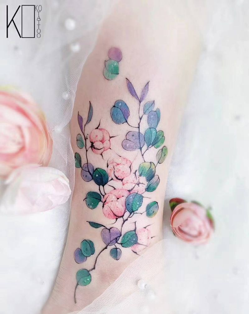 当前位置: 首页 >湖北省武汉市纹身店-KOKO TATTOO原创定制纹身店纹身图案>棉花纹身图片_脚部水彩棉花尤加利叶一人一图纹身图案