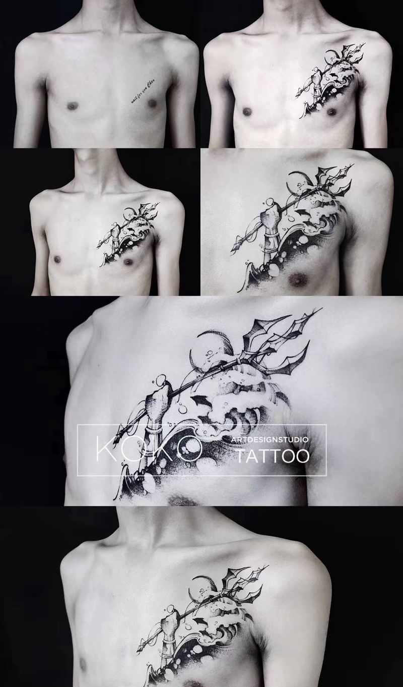 当前位置: 首页 >湖北省武汉市纹身店-KOKO TATTOO原创定制纹身店纹身图案>三叉戟纹身图片_肩部点刺遮盖设计一人一图定制设计纹身图案