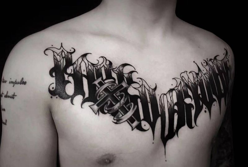 当前位置: 首页 >湖北省武汉市纹身店-KOKO TATTOO原创定制纹身店纹身图案>花体字纹身图片_胸部花体字一人一图定制设计花体字设计纹身图案