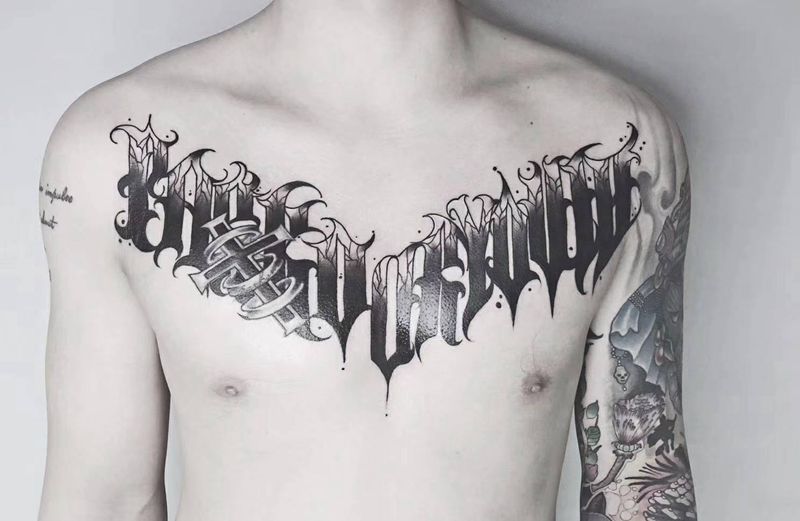 当前位置: 首页 >湖北省武汉市纹身店-KOKO TATTOO原创定制纹身店纹身图案>花体字纹身图片_胸部花体字一人一图定制设计花体字设计纹身图案