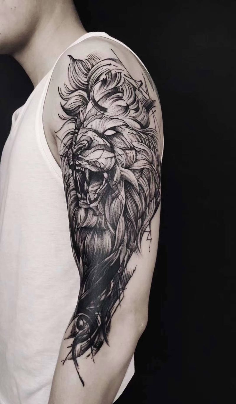 狮子座♌️纹身图片_手臂点刺一人一图遮盖设计定制设计纹身图案