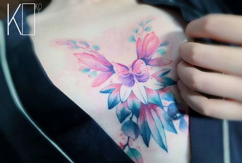 当前位置: 首页 >湖北省武汉市纹身店-KOKO TATTOO原创定制纹身店纹身图案>伤疤遮盖纹身图片_胸部水彩花卉伤疤遮盖定制纹身图案