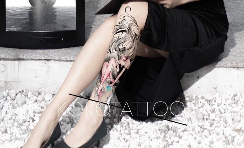 • T网红王老大花腿龙纹身图片_腿部新传统纹身图案