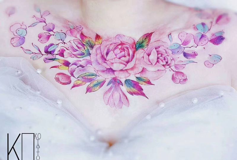 当前位置: 首页 >湖北省武汉市纹身店-KOKO TATTOO原创定制纹身店纹身图案>尤加利叶纹身图片_胸部水彩一人一图遮盖设计梦幻纹身图案