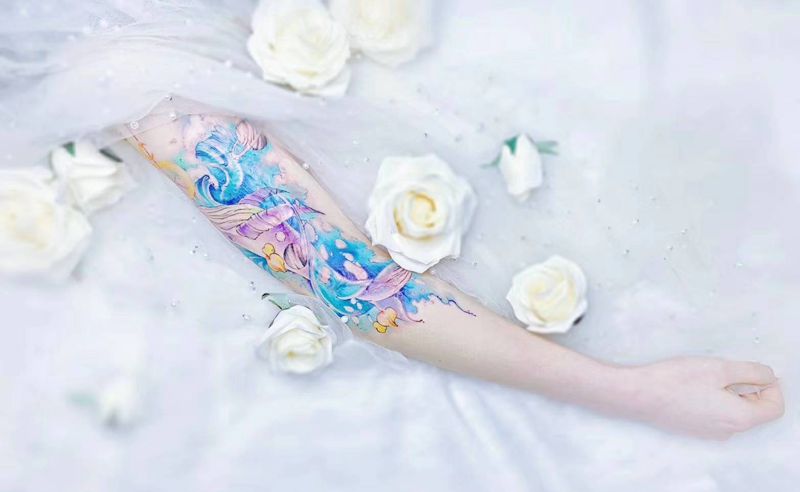 当前位置: 首页 >湖北省武汉市纹身店-KOKO TATTOO原创定制纹身店纹身图案>鲸鱼纹身图片_手臂水彩一人一图遮盖设计定制纹身图案