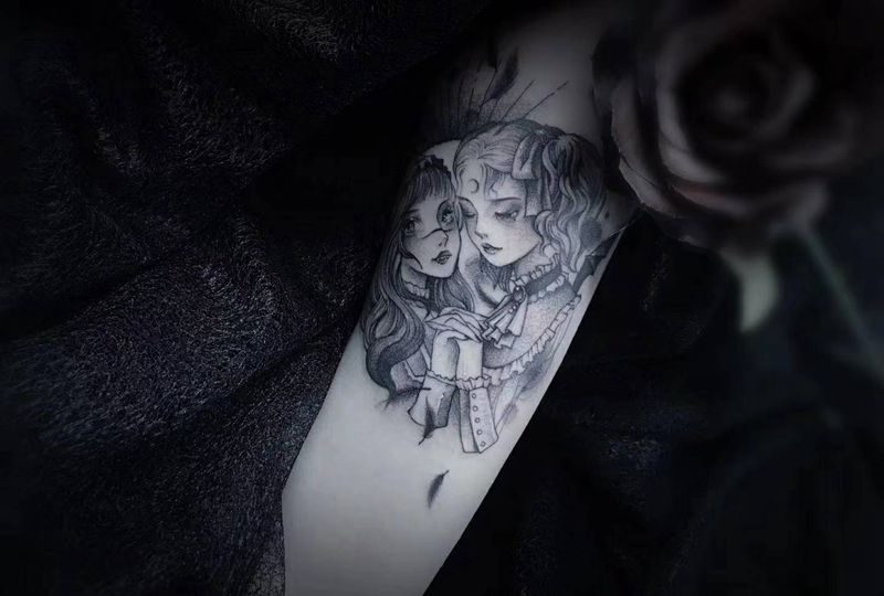 当前位置: 首页 >湖北省武汉市纹身店-KOKO TATTOO原创定制纹身店纹身图案>双子座纹身图片_手臂点刺插画星座定制纹身图案