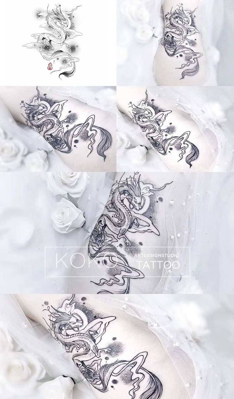 当前位置: 首页 >湖北省武汉市纹身店-KOKO TATTOO原创定制纹身店纹身图案>龙纹身图片_腰部点刺龙定制小清新纹身图案