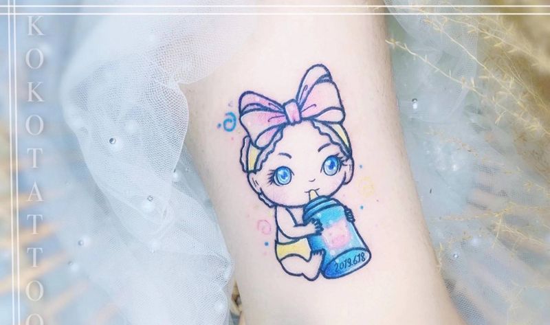 当前位置: 首页 >湖北省武汉市纹身店-KOKO TATTOO原创定制纹身店纹身图案>宝宝肖像纹身图片_手臂水彩宝宝卡通定制纹身图案