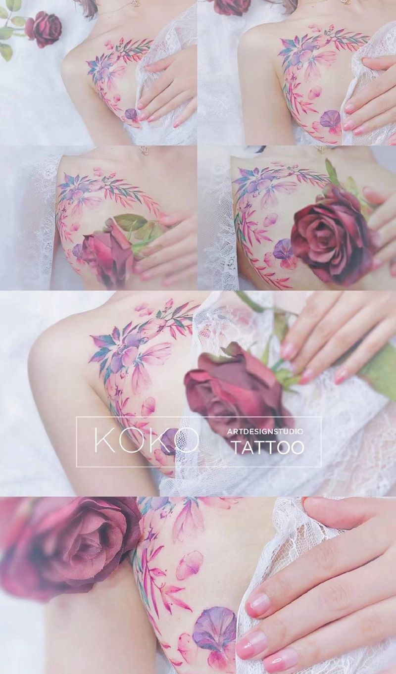 • 女性大花胸纹身_43张霸气漂亮的女性大花胸纹身图案作品