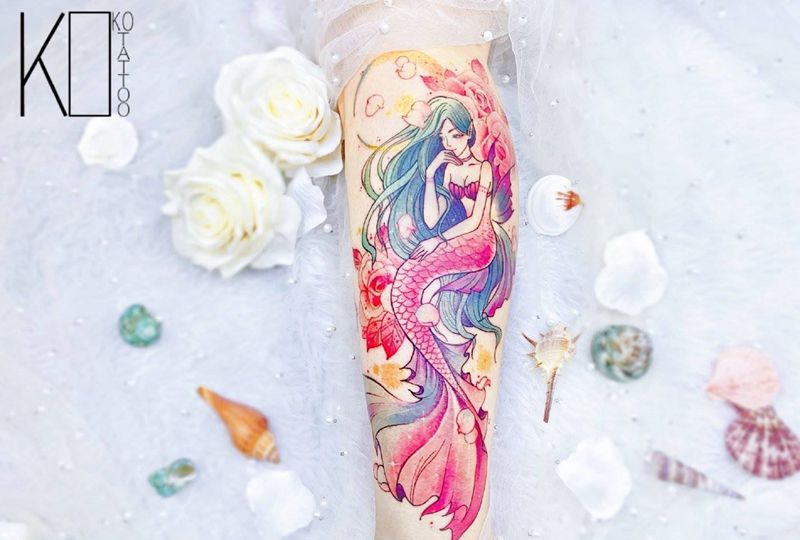 当前位置: 首页 >湖北省武汉市纹身店-KOKO TATTOO原创定制纹身店纹身图案>美人鱼纹身图片_腿部水彩水彩少女定制纹身图案