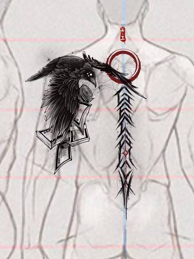 黑灰满背纹身图案