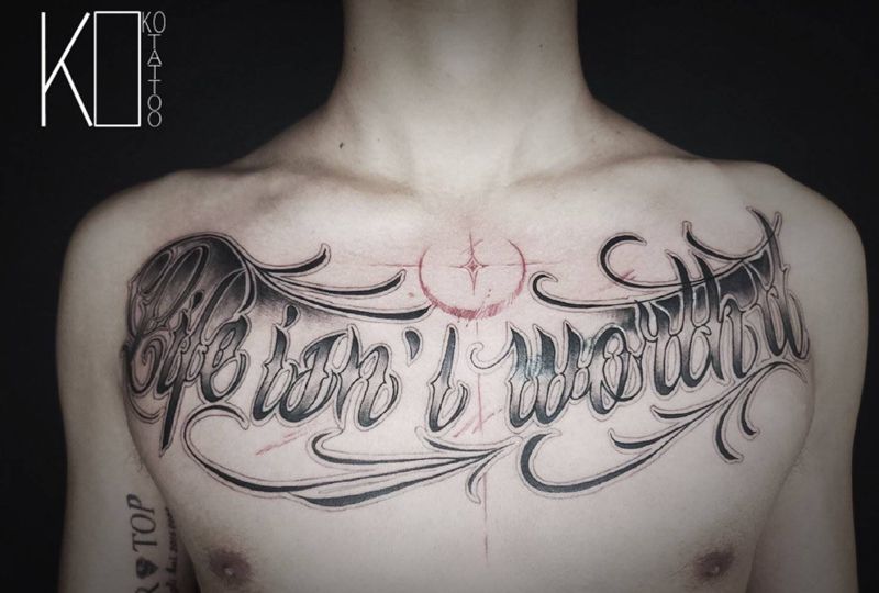 当前位置: 首页 >湖北省武汉市纹身店-KOKO TATTOO原创定制纹身店纹身图案>花体字合集纹身图片_手臂胸部花体字定制花体字设计纹身图案