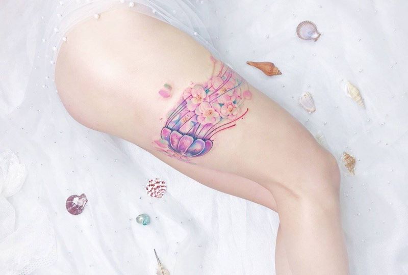 当前位置: 首页 >湖北省武汉市纹身店-KOKO TATTOO原创定制纹身店纹身图案>水母纹身图片_腿部水彩腿环水彩水母纹身图案