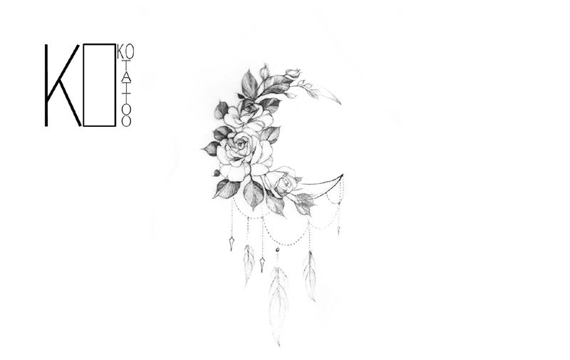 当前位置: 首页 >湖北省武汉市纹身店-KOKO TATTOO原创定制纹身店纹身图案>月亮纹身图片_腿部点刺花卉月亮羽毛纹身图案