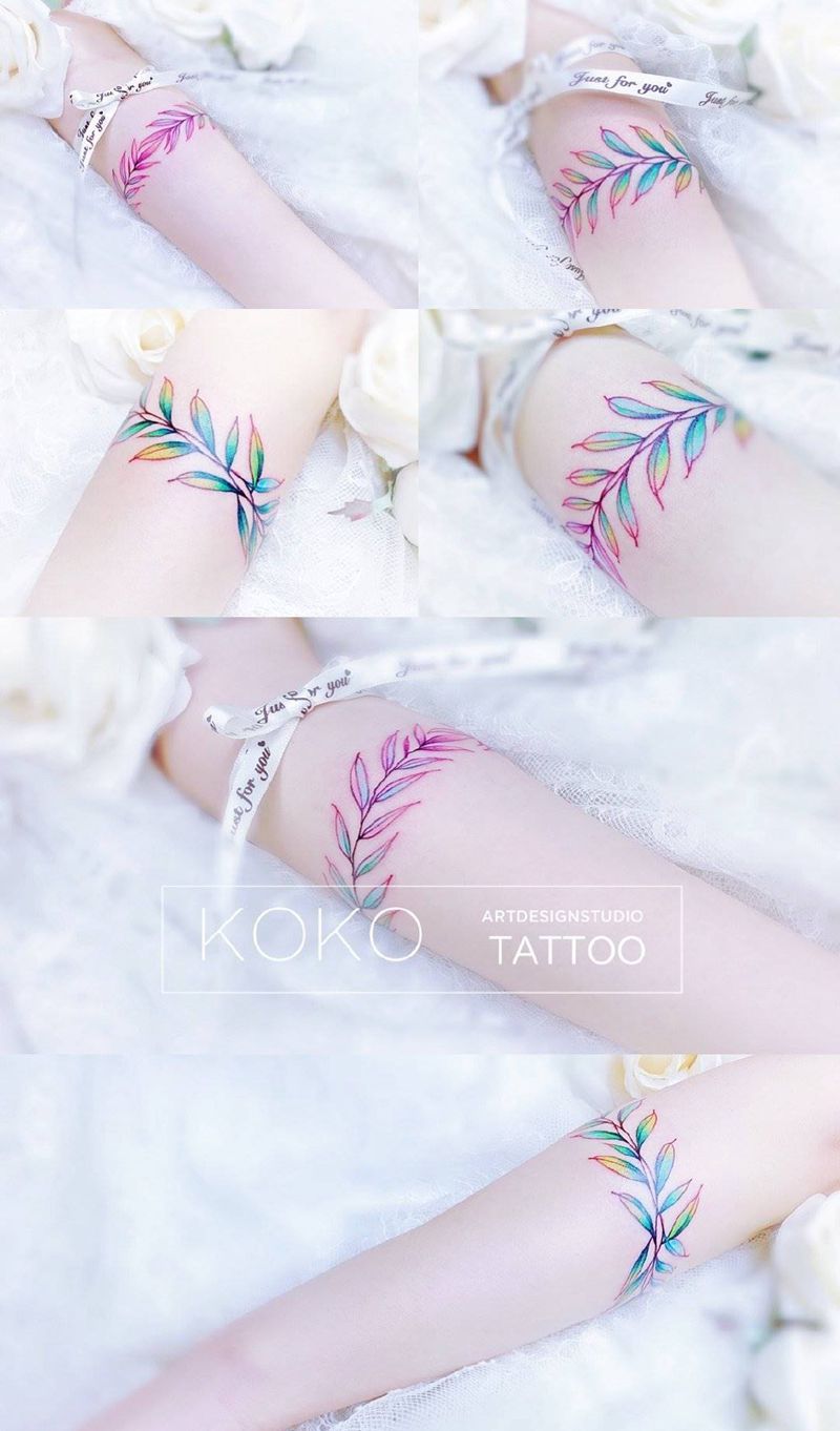 当前位置: 首页 >湖北省武汉市纹身店-KOKO TATTOO原创定制纹身店纹身图案>手环纹身图片_手臂水彩叶子手环水彩纹身图案