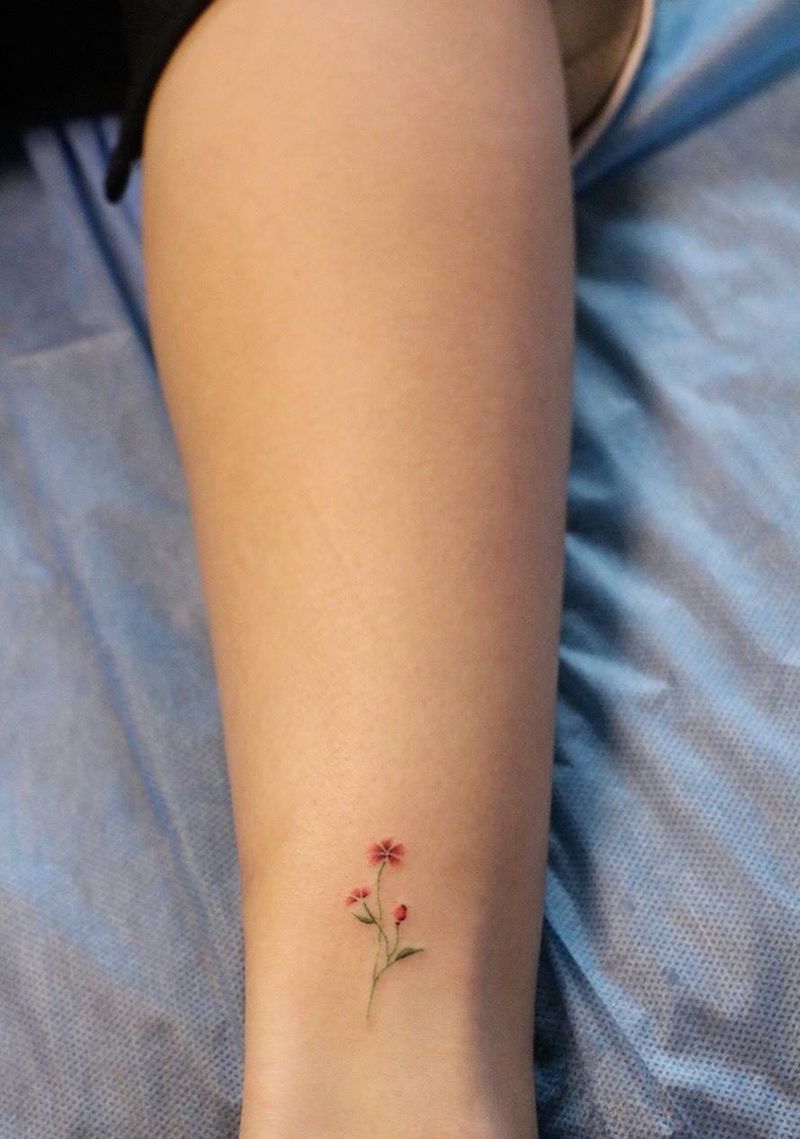 脚踝小花。纹身图片_插画成品脚部腿部清新植物贴纸纹身图案