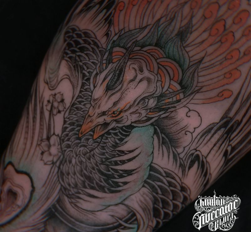 当前位置: 首页 >湖北省武汉市纹身店-Liberator Tattoo纹身图案>小腿山海经凤凰 微彩纹身图片_腿部New School新传统凤凰山海经鸟纹身图案