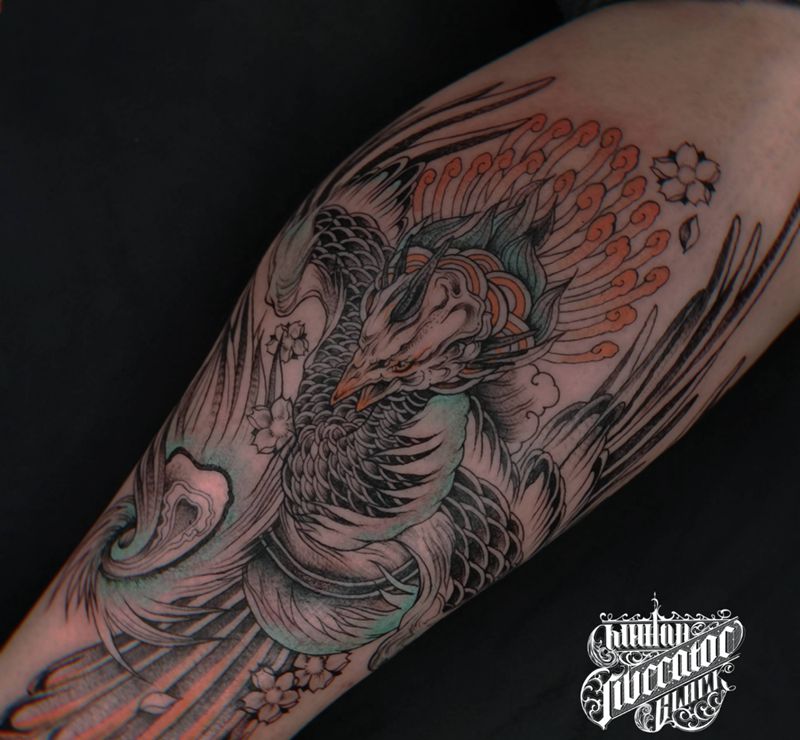 当前位置: 首页 >湖北省武汉市纹身店-Liberator Tattoo纹身图案>小腿山海经凤凰 微彩纹身图片_腿部New School新传统凤凰山海经鸟纹身图案