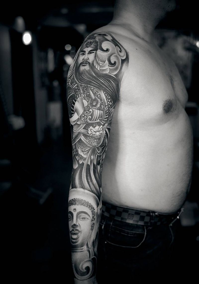 当前位置: 首页 >湖北省武汉市纹身店-武汉老兵纹身店纹身图案>传统花臂关公佛纹身纹身图片