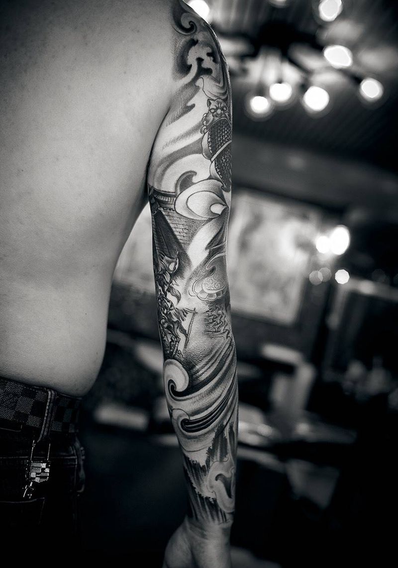 当前位置: 首页 >湖北省武汉市纹身店-武汉老兵纹身店纹身图案>传统花臂关公佛纹身纹身图片