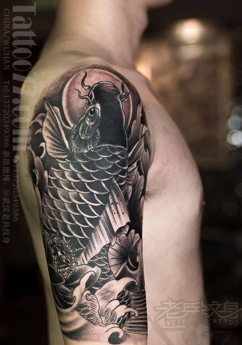 当前位置: 首页 >湖北省武汉市纹身店-武汉老兵纹身店纹身图案>大臂鲤鱼纹身纹身图片