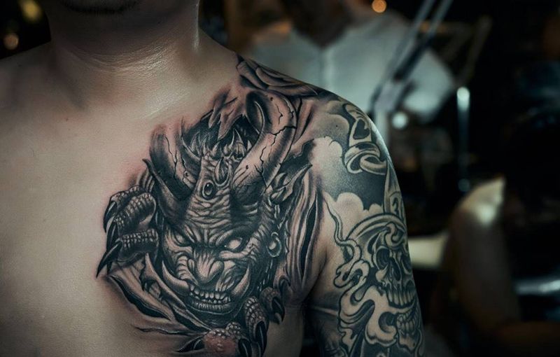 • 男性大花胸_42张优秀的男性大花胸纹身图案图片