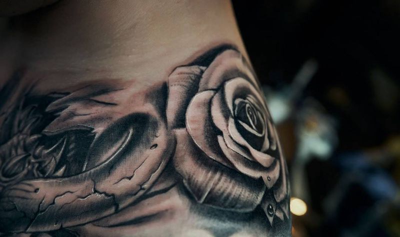 • 女性大花胸纹身_43张霸气漂亮的女性大花胸纹身图案作品