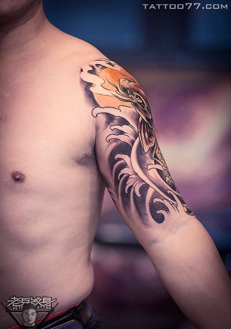 当前位置: 首页 >湖北省武汉市纹身店-武汉老兵纹身店纹身图案>新传统鲤鱼纹身图片_传统手臂原创成品纹身图案