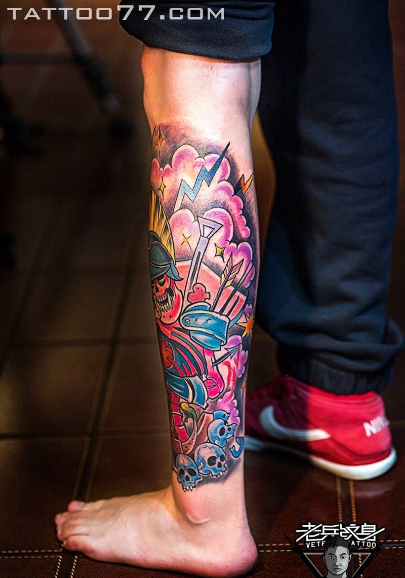 当前位置: 首页 >湖北省武汉市纹身店-武汉老兵纹身店纹身图案>剑客纹身图片_成品腿部欧美鬼神人物纹身图案