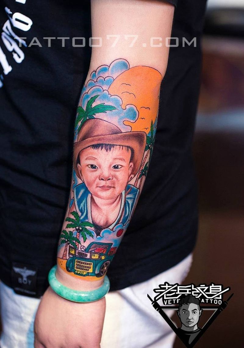 宝宝肖像纹身作品纹身图片_成品手臂肖像人物纹身图案