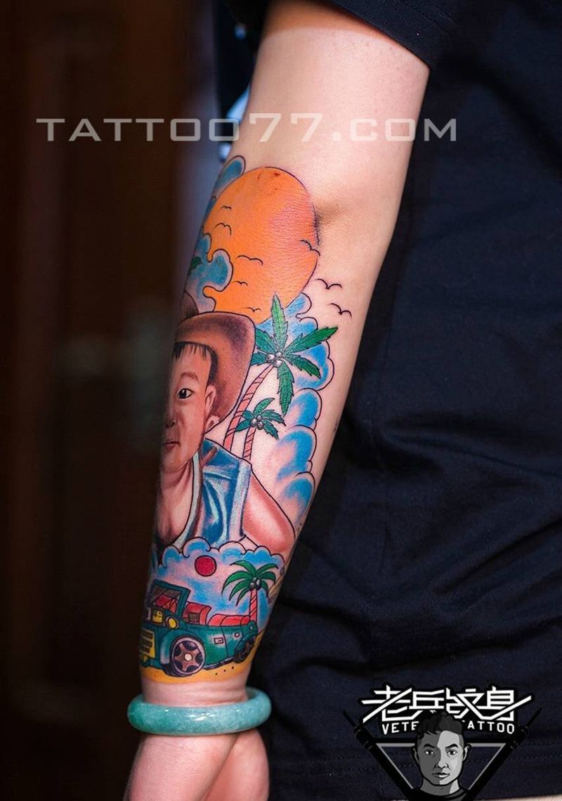 当前位置: 首页 >湖北省武汉市纹身店-武汉老兵纹身店纹身图案>宝宝肖像纹身作品纹身图片_成品手臂肖像人物纹身图案