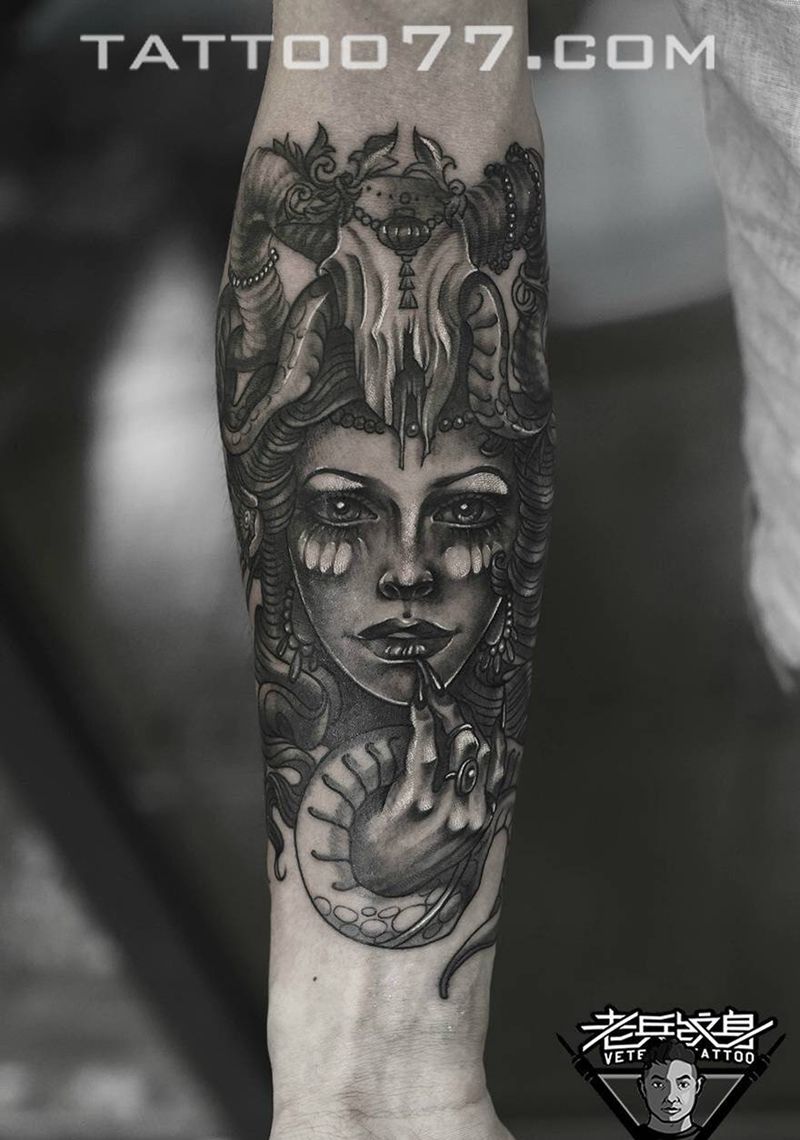 手部欧美女郎纹身作品纹身图片_成品手部肖像欧美人物纹身图案