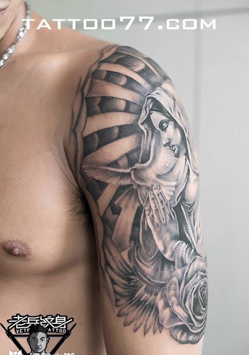 圣母纹身作品纹身图片_成品手臂欧美人物宗教纹身图案