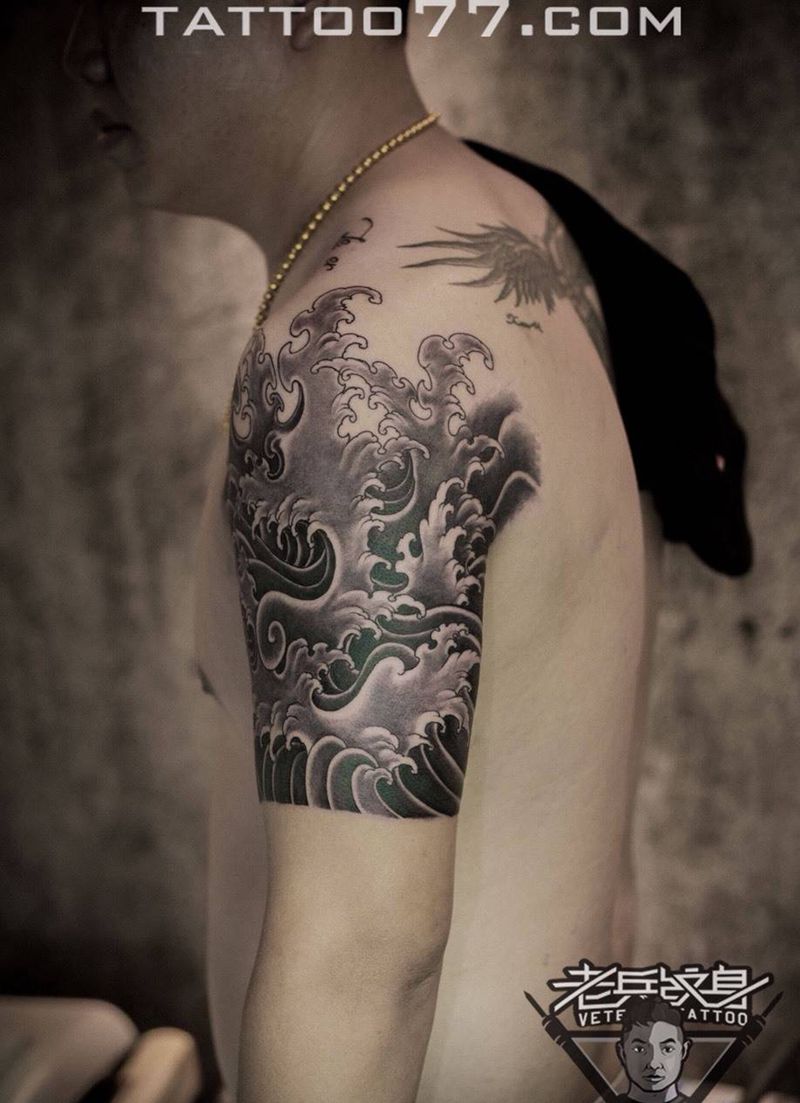 当前位置: 首页 >湖北省武汉市纹身店-武汉老兵纹身店纹身图案>大臂浪花纹身作品纹身图片_成品手臂传统静物纹身图案