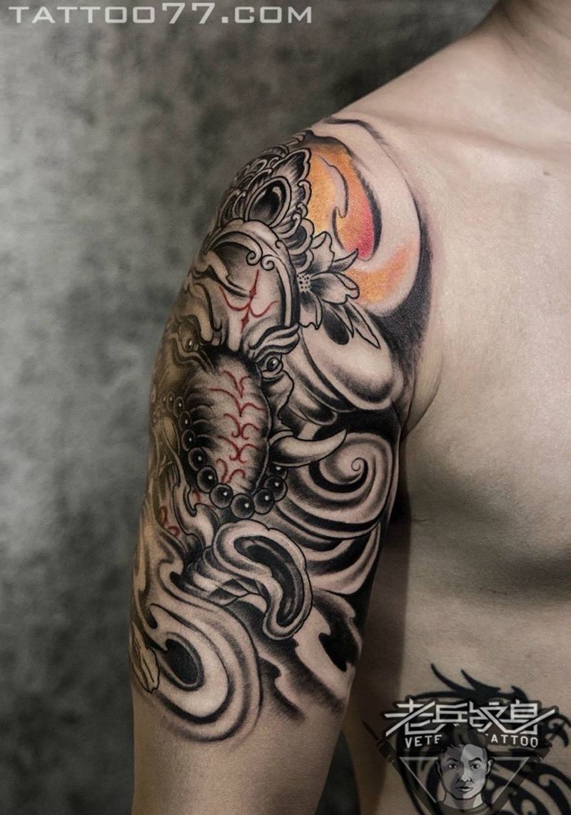 当前位置: 首页 >湖北省武汉市纹身店-武汉老兵纹身店纹身图案>大臂象神纹身作品纹身图片_成品手臂传统动物纹身图案