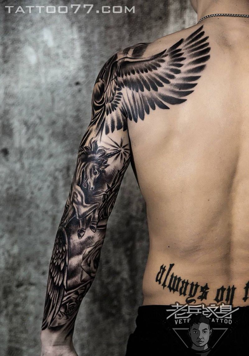 当前位置: 首页 >湖北省武汉市纹身店-武汉老兵纹身店纹身图案>花臂欧美天使纹身作品纹身图片_成品手臂欧美人物纹身图案