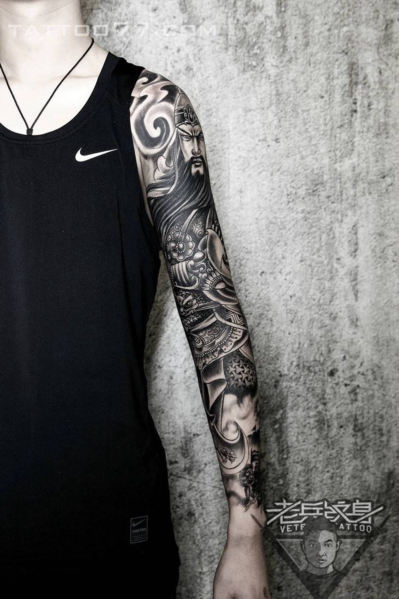 花臂关公纹身作品纹身图片_成品手臂传统人物纹身图案