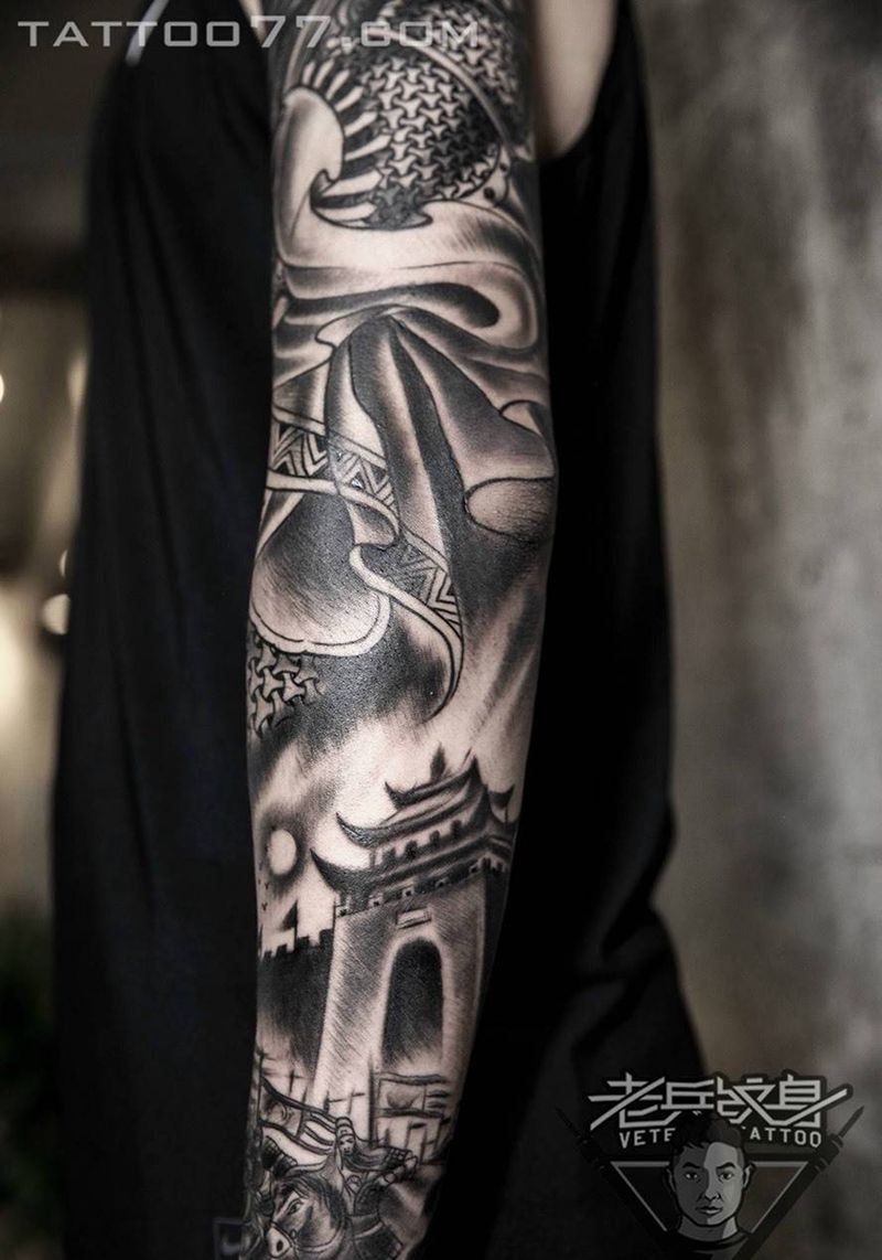 当前位置: 首页 >湖北省武汉市纹身店-武汉老兵纹身店纹身图案>花臂关公纹身作品纹身图片_成品手臂传统人物纹身图案