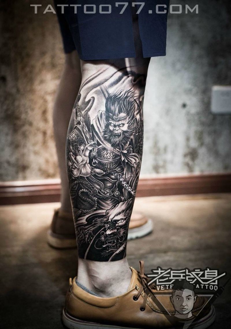 当前位置: 首页 >湖北省武汉市纹身店-武汉老兵纹身店纹身图案>小腿斗战圣佛纹身作品纹身图片_成品腿部传统鬼神人物纹身图案