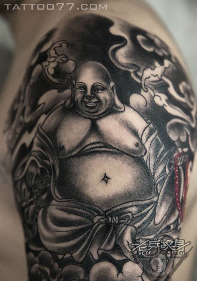 当前位置: 首页 >湖北省武汉市纹身店-武汉老兵纹身店纹身图案>大臂弥勒佛纹身作品纹身图片_成品手臂传统人物纹身图案