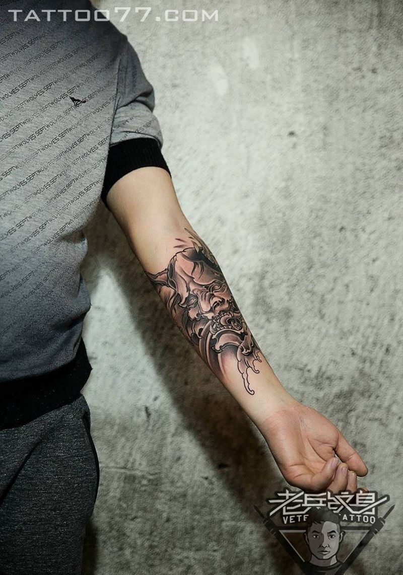 手部般若纹身作品纹身图片_成品手部传统鬼神纹身图案