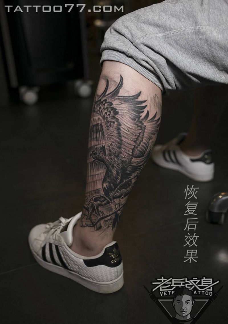 当前位置: 首页 >湖北省武汉市纹身店-武汉老兵纹身店纹身图案>小腿老鹰纹身作品纹身图片_成品腿部传统动物纹身图案