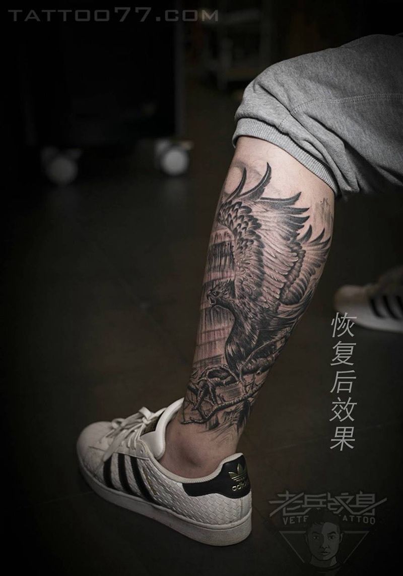 当前位置: 首页 >湖北省武汉市纹身店-武汉老兵纹身店纹身图案>小腿老鹰纹身作品纹身图片_成品腿部传统动物纹身图案