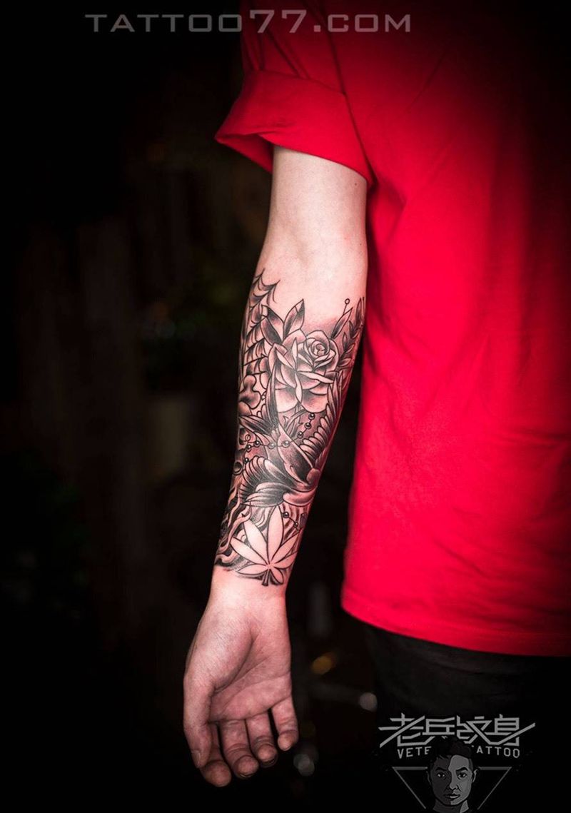 欧美小花臂纹身作品纹身图片_成品手部欧美纹身图案