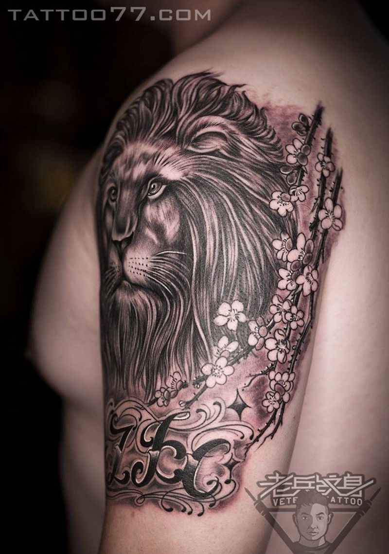 兵哥打造的大臂狮子纹身作品纹身图片_成品手臂欧美动物纹身图案