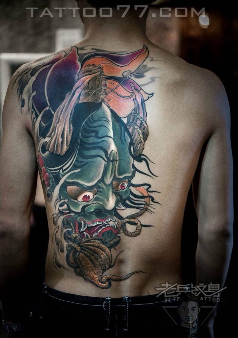 后背般若纹身作品纹身图片_成品背部传统鬼神纹身图案