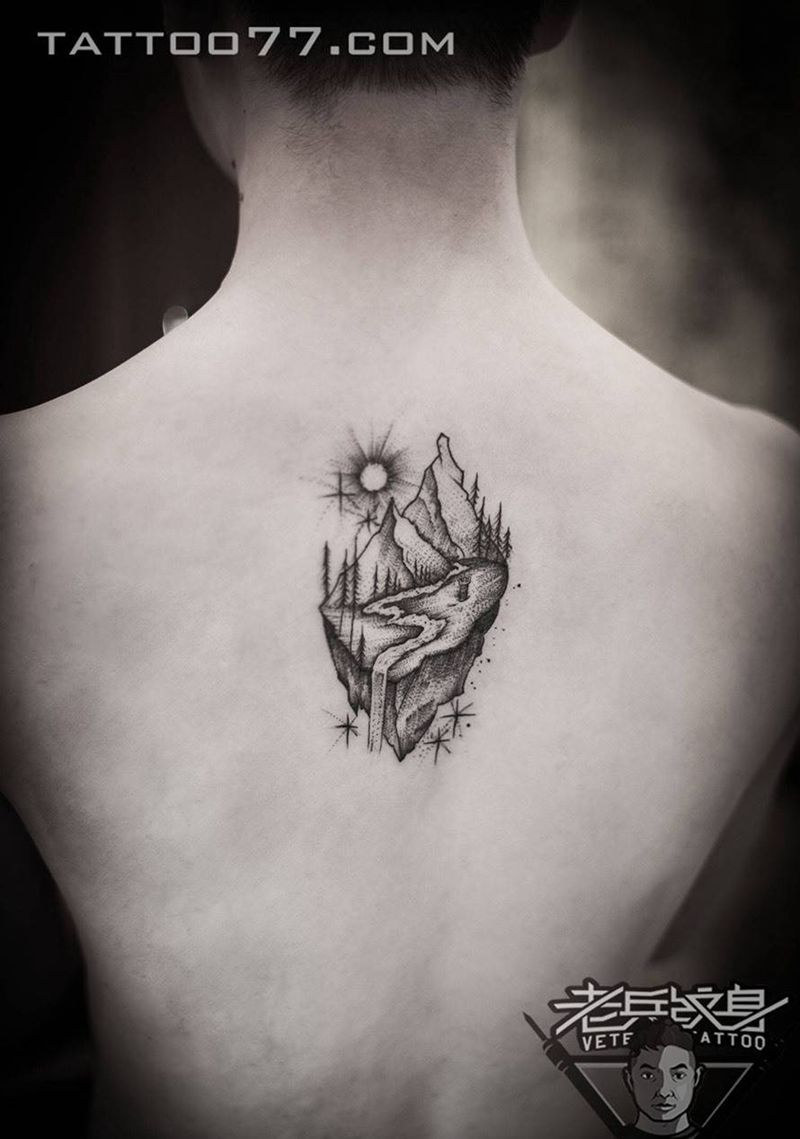 当前位置: 首页 >湖北省武汉市纹身店-武汉老兵纹身店纹身图案>两款山水纹身纹身图片_成品背部清新纹身图案