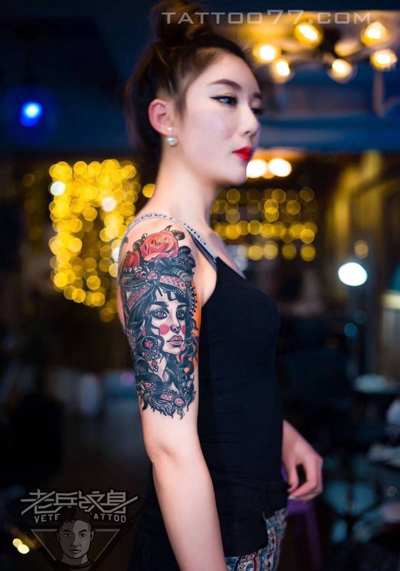 当前位置: 首页 >湖北省武汉市纹身店-武汉老兵纹身店纹身图案>大臂女郎纹身纹身图片_成品手臂欧美人物纹身图案
